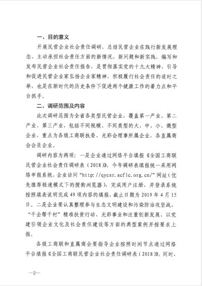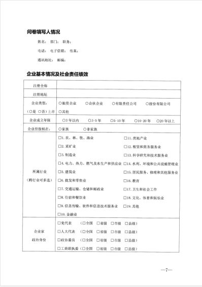 近日,我会接到江西省工商联办公室〔2019〕4号文,请各分支365提款10万一般多久_365速发国际平台app下载_Bte365秘书处按照文件要求,通知本365提款10万一般多久_365速发国际平台app下载_Bte365至少5家企业,通过网络平台填报《全国工商联民营企业社会责任调研表(2018)》。企业访问http://qycsr.acfic.org.cn/”网址,完成用户注册,并登录系统按照填表说明完成填报,截止日期为2019年4月15日。请各会员互相告知,以免遗漏。 联系人:袁芳 联系电话:18507918570