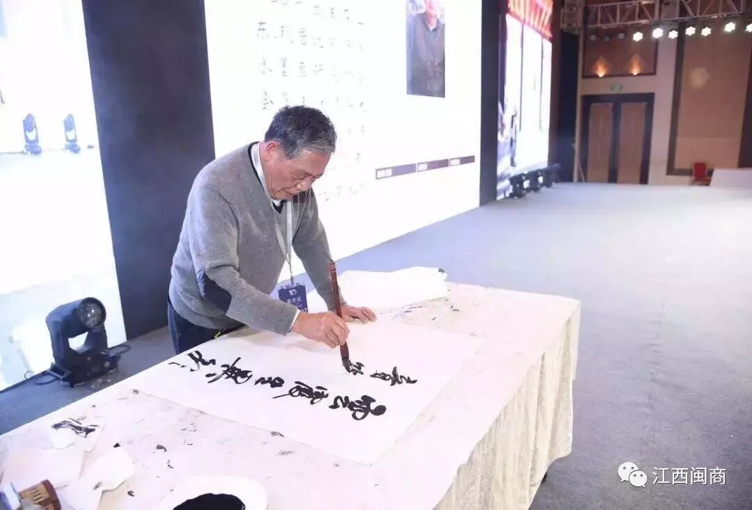 图为中国美院原书记、着名书法家叶照忠老师,为全球贵商上海峰会挥毫泼墨