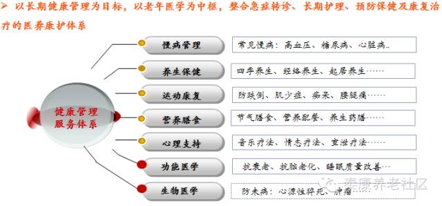 1、医养融合:自建康复医院,投资建设辐射全国的国际标准三级综合医院并与世界知名医院建立战略合作关系,为居民进行定制健康管理;