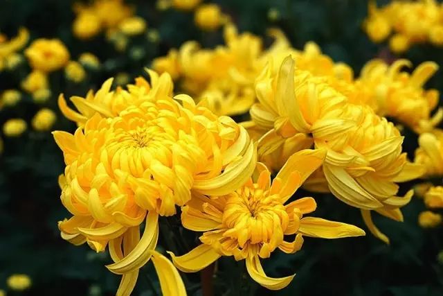 几盆色彩各异的菊花,一朵朵如打开的小伞,如绣球紧紧团聚在一起,仿佛在照应着天上的明月。